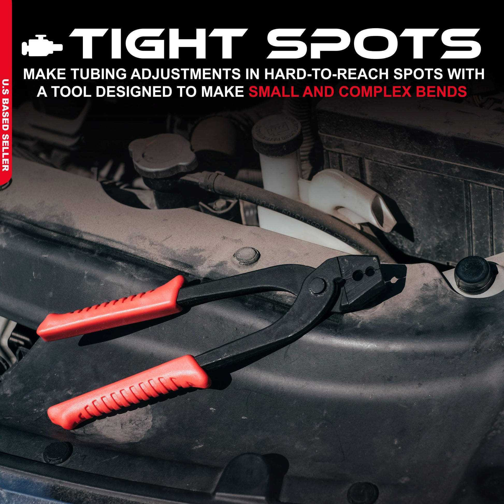 - [For Tight Spots]: Brake pipe bender tool makes tight radius bends that are small and complex; Make tubing shape adjustments even when installed in vehicle with small clearance between inner wells and tube